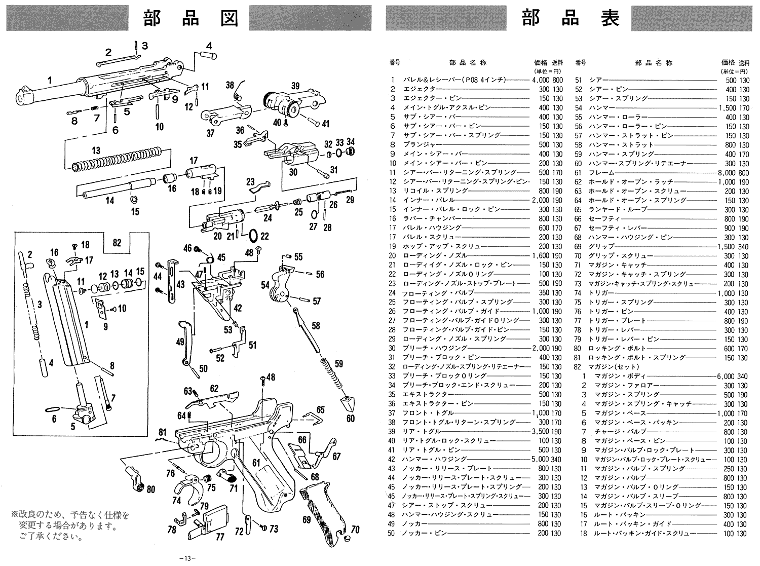 資料保管庫 2022.06.202025.09.30 保存版の資料ページです リアルカウント装填数 一覧表ページ マルシン トーラス レイジングブル 分解図|パーツリスト タナカ S&W M500 分解図|パーツリスト タナカ ルガー P08 分解図|パーツリスト